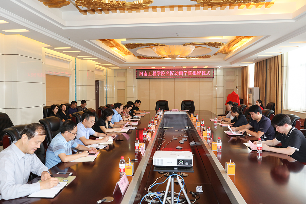 副校长王永恒与郑州名匠网络科技有限公司总经理徐干共同签署了《校企全面合作协议》。随后,校长李利英和名匠网络科技有限公司总经理徐干共同为“河南工程学院名匠动画学院”揭牌,并向徐干总经理颁发河南工程学院名匠动画学院院长聘书。艺术设计学院院长陈涛代表学校接受名匠网络科技有限公司捐赠300万元设立的“河南工程学院名匠动画学院教育发展基金”。