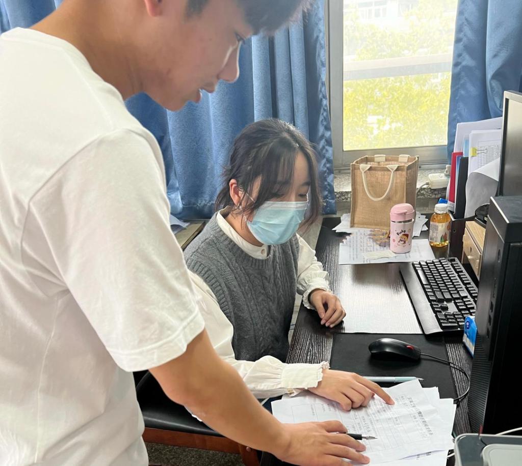 10月2日,化工与印染工程学院学工办老师按照学校十一假期工作部署要求,全体按时到岗,正常办公,确保办公室有老师在岗,随时帮助学生解决生活、学习过程中遇到的疑难问题,为学生平安度过十一假期保驾护航。