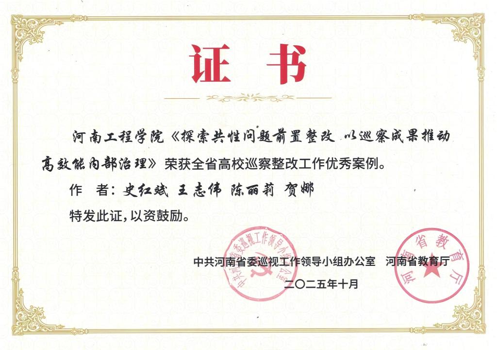 在本次会议组织的巡察整改案例评选中,我校党委巡察办公室报送的《探索共性问题前置整改 以巡察成果推动高效能内部治理》荣获河南省高校巡察整改工作优秀案例。据悉,本次评选活动共征集巡察整改案例101份,最终28项入选优秀案例集,为省管高校巡察整改工作提供了实践参考。