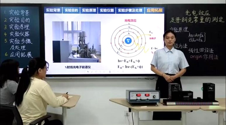 本届赛事规模空前,吸引力十足,共汇聚全国 722 所高校、3260 支参赛队伍、18985 名师生同台竞技,竞争尤为激烈。经过层层筛选与多轮比拼,我校两支参赛队伍脱颖而出:在自选类赛道,顾凯琪、赵士翼、韦英果、刘珂同学组成的团队,凭借作品“半导体温差发电器仿真实验”,在王远、王文闯两位老师的指导下,荣获国家二等奖;在讲课类赛道,张羽瑶、李珂、张梦茹同学带来的“光电效应及普朗克常量的测定”课程展示,经魏科伟、朱双美老师全程指导,同样斩获国家二等奖。两项奖项的取得,既是参赛学子刻苦钻研、勇于创新的成果,也彰显了我校物理实验教学的扎实基础与育人成效。