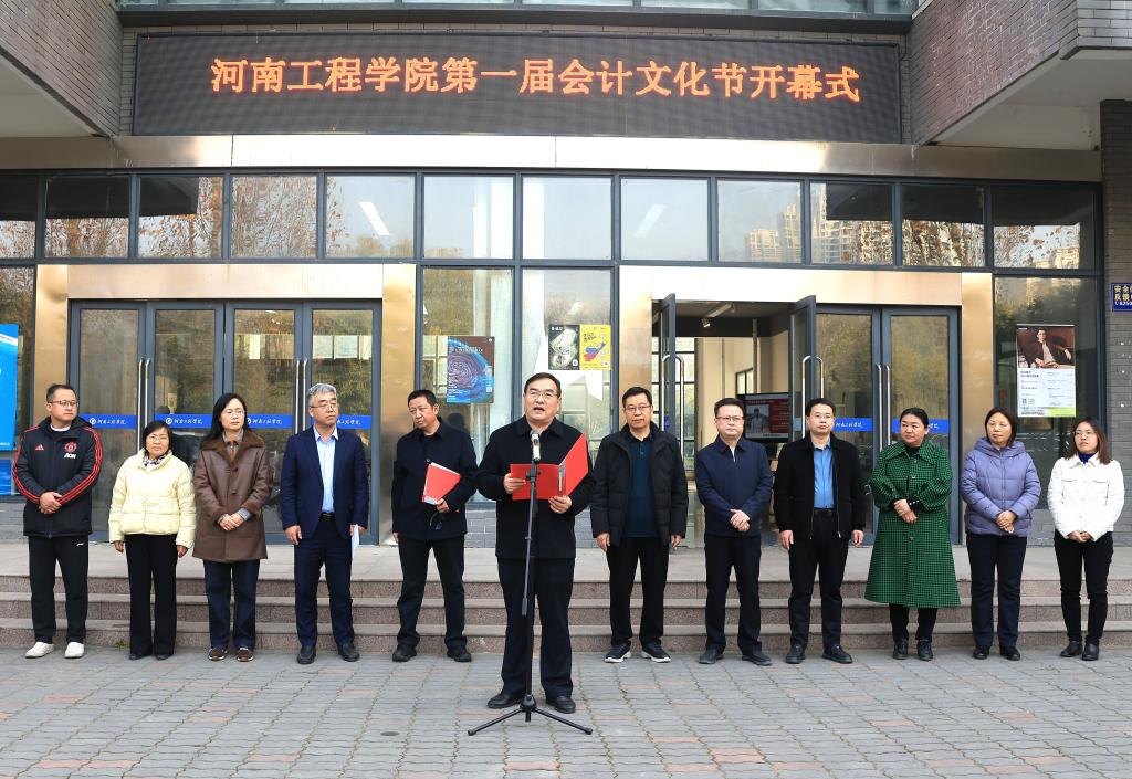 12月10日下午,河南工程学院首届会计文化节开幕式在南区8号楼北门外广场举行。校党委副书记刘超,河南省会计学会副会长臧希昌、王生交出席活动,党委组织部、学生处、财务处、审计处、艺术设计学院、国际教育学院等部门代表,以及企业、会计师事务所和兄弟高校专家、会计学院师生代表100余人参加活动。开幕式由会计学院党委书记、院长程光主持。