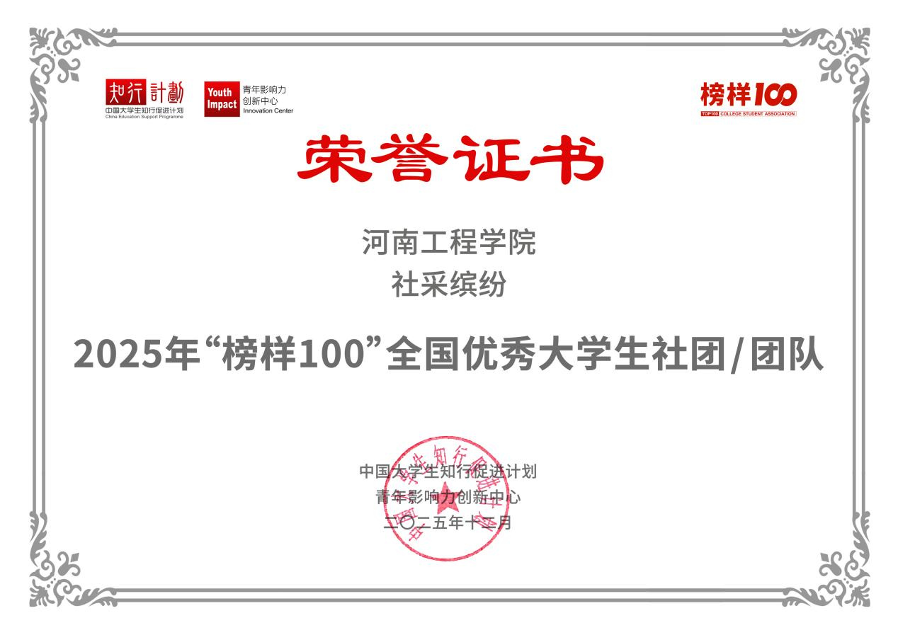 近日,由大学生知行计划和青年影响力创新中心联合发起的2025年“榜样100”全国优秀大学生社团及团队榜单(第二批)正式揭晓,该榜单旨在表彰在各项活动中表现出色的社团和团队。我校社采缤纷团队、青年志愿者协会、黑苹果青年社团三个优秀学生团队,经过严格的评选过程,从全国376所高校的1320支团队中脱颖而出,成功入选“榜样100”全国优秀大学生社团/团队。