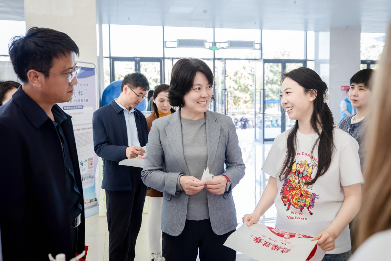 路演期间,校长李利英、副校长张巧玲来到现场和参赛学生亲切交流,听取同学们对项目创新亮点、技术原理和应用前景的介绍。在智能制造、绿色能源、国潮文创等多个展位前,李利英详细询问了项目的研发进展、市场定位以及成果转化情况,对同学们敢于探索、勇于创新的精神给予充分肯定。她指出,“挑战杯”创业计划竞赛不仅是激发大学生创新潜能、锤炼实践能力的重要平台,更是大家将课堂所学转化为解决实际问题的试金石。同学们的项目不仅展现了扎实的专业素养,更体现了将知识转化为价值、用科技回应时代需求的强烈使命感。她强调,创新的源头是问题,落点在实践。近年来,学校始终将创新创业教育融入人才培养全过程,持续加大投入,建设创新实验室、创业孵化基地,设立专项基金,全力为同学们的创新创意保驾护航。希望同学们持续保持探索精神,在深化技术攻关的同时,也要多思考市场需求、用户体验与社会效益。在打磨产品的同时,也要注重团队协作、商业模式与风险规划。她要求,学校相关部门要持续搭建平台,推进产教融合,帮助优秀的项目走出校园、走向市场,让更多创新火花转化为实实在在的生产力、服务力,让河工学子在现代化征程中书写绚丽篇章。