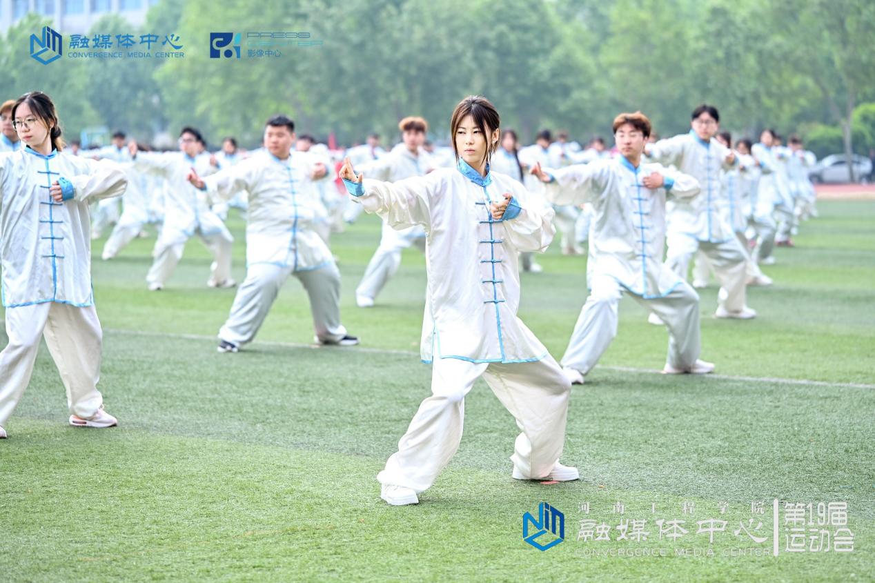 开幕式上,校大学生艺术团管乐团奏响运动会序曲《时代的律动》,随后大型团体操表演《笃行逐梦・律动河工》精彩上演。第一篇章《空竹龙腾 盛世昂扬》,240名学子以非遗空竹演绎传统体育活力;第二篇章《薪火赓续 翼舞华章》,服装学院学子以彩绸与舞步融合服饰文脉与青春力量;第三篇章《武韵八段 气贯长虹》,300名学子以八段锦展现中华武术刚柔并济;第四篇章《大好河山 锦绣山河》,理学院学子以彩绸翻飞绘就青春画卷。整场表演气势恢宏、精彩纷呈,赢得全场阵阵掌声。据悉,本届运动会历时2天,师生将在51个比赛项目上进行角逐。