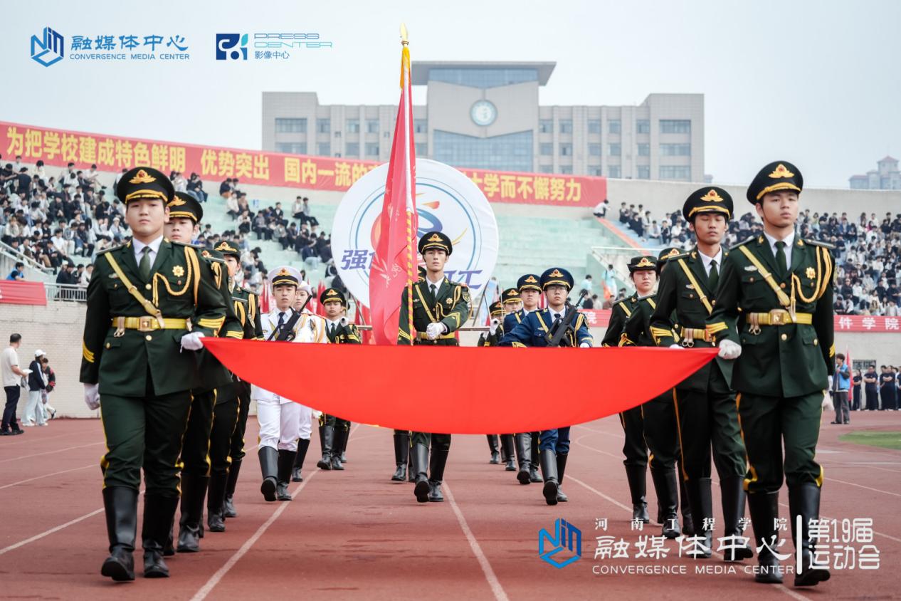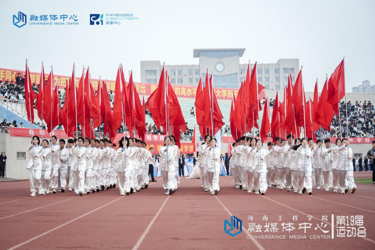 伴随着雄壮激昂的《运动员进行曲》,国旗方队、校旗方队、会徽方队、彩旗方队昂首阔步、依次入场,各学院代表队、教工代表队、裁判员代表队精神饱满、意气风发,迈着整齐矫健的步伐,喊着铿锵嘹亮的口号,充分展现出河工师生团结奋进、朝气蓬勃、追求卓越的精神风貌。