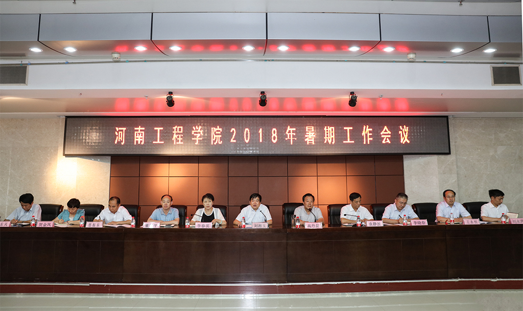 会上,校长高丹盈对暑期相关工作进行了安排部署,重点强调了五个方面的工作。一是“示范校”建设工作。全方位推进锦荣服装学院、中税中兴会计学院、永泽环境学院、高校数字媒体产教融合示范基地建设,以及与浪潮集团的战略合作,进一步健全机制、丰富合作方式、夯实合作基础,做实合作项目。各学院要积极努力、主动作为,推动校企合作和产教融合工作再上新台阶。二是教学工作。按照国家教学质量标准的要求,修订人才培养方案;探索新工科的理念,谋划推动学校传统工科专业改造和升级;按照工程教育专业认证的要求,逐步完善办学条件和师资队伍建设。三是科学研究工作。推动与河南省人民政府发展研究中心的战略合作,共建文化创意产业研究院。举办“543”创新团队建设经验交流会,谋划建设河南省重点实验室,超前规划下一年度的高层次科研项目申请等工作。四是人才引进。解放思想,大力引进高水平博士;拓宽引人渠道,围绕“543”创新团队、重点学科和科研平台等,广泛引进人才;科学使用人才,为人才施展才华创造良好氛围和机会。五是发展保障工作。做好桐柏路校区学生宿舍维修改造、教职工周转房建设、龙湖校区电力改造以及智慧校园建设等工程。