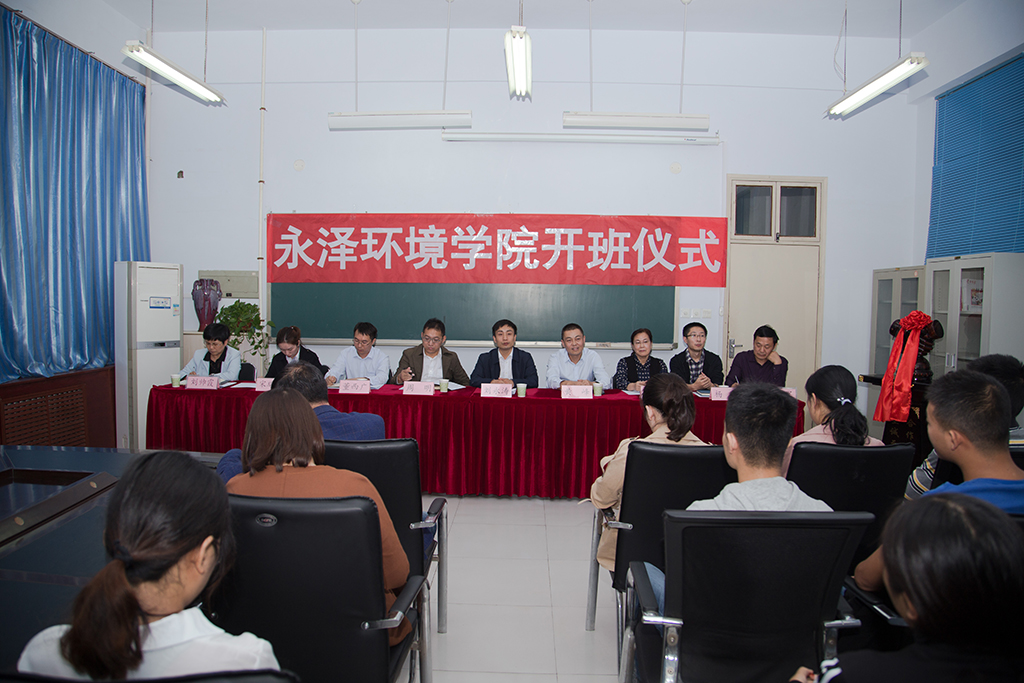 开班仪式上,资源与环境学院院长刘帅霞介绍了永泽环境学院建设方案, 黄峰和周明分别介绍了河南永泽环境科技有限公司基本情况、工作范围及今后的研发方向,并对永泽环境学院学生今后成长成才寄予了希望