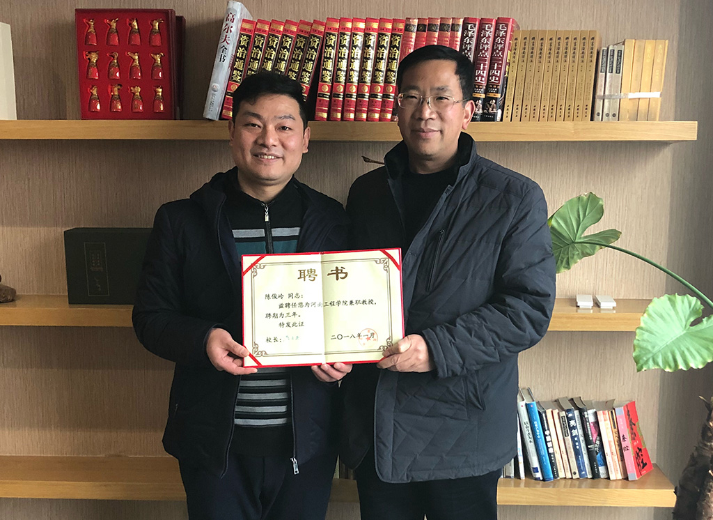 走访中,王保林代表学院向陈俊岭总经理颁发了兼职教授聘书。