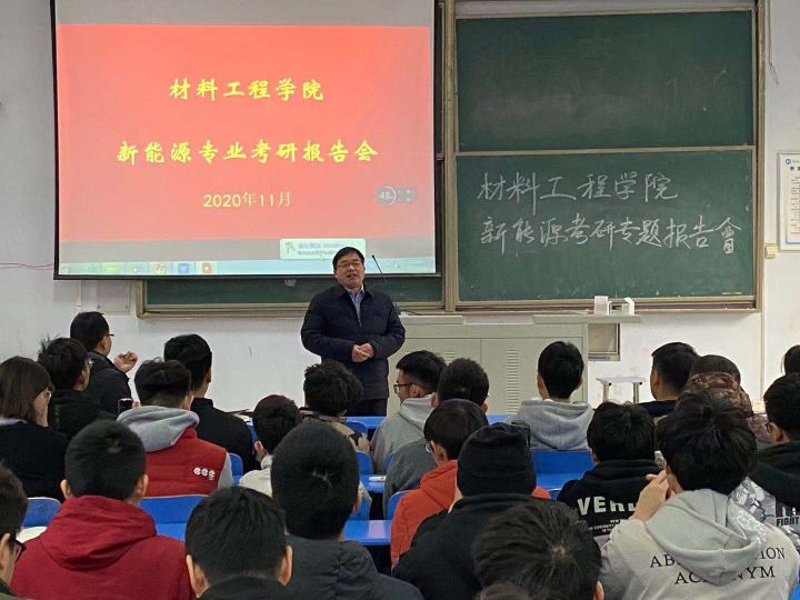工欲善其事,必先利其器,为帮助新能源材料与器件专业学生把握考研形势、解决学习困惑,11月28日下午学院在西区3J101教室举行考研报告会。参加本次报告会的有学院院长王振领、学院教师王玉周、李卫东、杜文静、段广宇,以及新能源专业三个年级学生代表,会议由分团委书记曹伟娜主持。