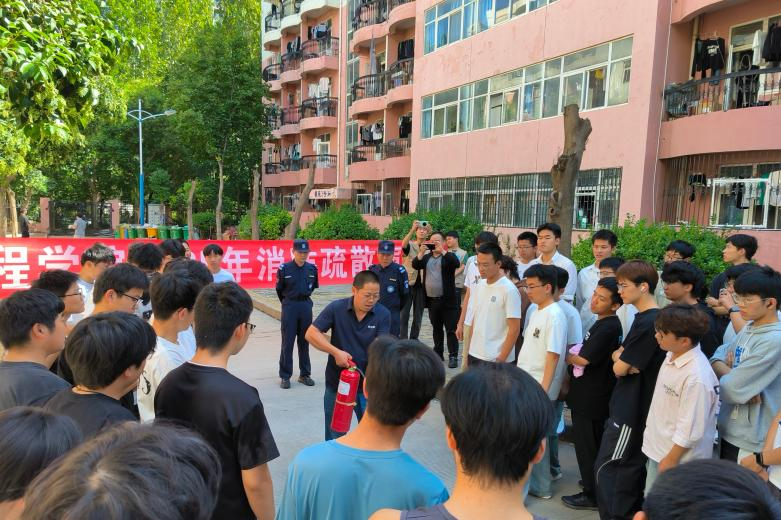 为切实强化校园消防安全工作,全方位提升学生应急避险与自救互救能力,9月25日中午,学生工作处、保卫处、敏行“一站式”学生社区、电气信息工程学院联合在西校区睿苑3、4号楼组织开展2025年度秋季学期消防应急疏散演练活动。电气信息工程学院2025级全体新生参与了此次演练。