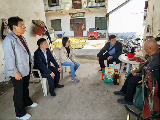 同志们亲切地与因患脑梗导致行动不便的何敬喜老人交谈,详细询问他们的身体状况、家庭情况、收入来源以及生活中遇到的实际困难。同时,嘱咐他们天冷要做好保暖措施,在保重身体的同时注意用火用电安全,若有困难及时反映,离退休工作处会尽全力帮助。73岁的何敬喜老人与刚刚做完胆囊摘除手术的老伴居住,子女都在外地工作。看到大家到来,老人双眼含泪,激动地说:“因为我和老伴生病让大家担心了,谢谢你们一直惦记着我们,我心里感到特别暖和。现在,党的政策好,第一书记来了,村上的道路硬化了,路灯安上了,活动广场也建成了,日子越来越好,我们更有盼头了,请大家放心!”