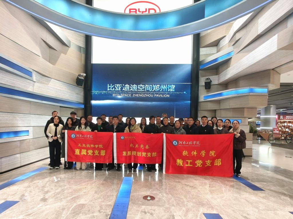为深入推进党建与专业建设深度融合,强化产教融合实践认知,切实提升教工党员专业素养与教学科研能力,软件学院教工党支部联合发展规划党支部、工业软件党支部于12月17日赴郑州比亚迪“迪空间”开展产教融合主题党日活动并进行参观学习。