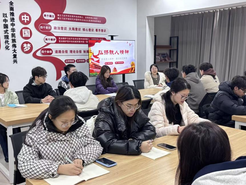 为深入学习贯彻党的二十届四中全会精神,扎实推进学习贯彻习近平新时代中国特色社会主义思想主题教育走深走实,12月17日上午,敏行“一站式”学生社区在睿苑6号楼一楼红脉学堂组织开展“红色基因·薪火相传”精神谱系研学行动之铁人精神专题学习活动。敏行社区冯妍老师担任主讲,40余名学委会学生干部及学生代表参加活动。