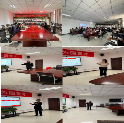 系列活动以党建为引领,率先筑牢思想根基。10月28日,学院党总支召开理论学习中心组(扩大)学习会,党总支书记张晓静以“深学细悟全会精神,守正创新铸魂育人”为题,围绕全会精神核心要义、教学融入路径及保障机制等方面深入阐释,强调将全会精神融入思政课是重大政治责任。学院始终坚守为党育人、为国育才初心,以高站位、实举措推动全会精神落地生根,引导青年学生勇担中国式现代化建设使命。12月3日,全体教师政治理论学习研讨会如期举行,王辉老师以“中国式现代化与国家治理现代化”为主题,系统解读全会总体目标与制度创新内涵,推动教师将制度自信教育贯穿教学全过程,凝聚起知行合一的教学共识。