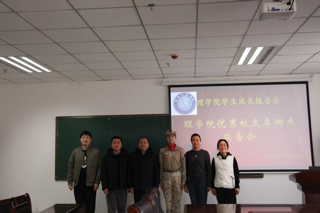 为发挥优秀校友榜样引领作用,弘扬爱国主义精神与奋斗品格,1月5日下午,理学院特邀优秀校友李娜杰重返母校,以“两次阅兵铸忠诚 青春奋斗映初心”为主题开展成长报告会。理学院党委书记刘付军、党委副书记陈萍等相关师生代表共同参会,现场气氛热烈。
