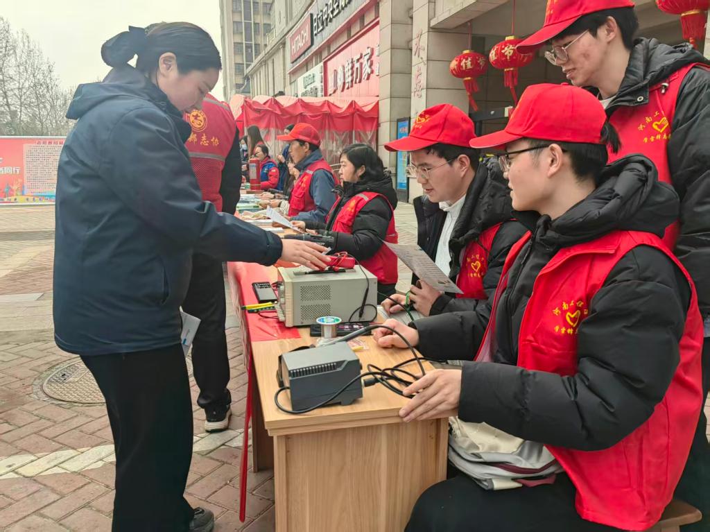 3月5日,第63个学雷锋志愿服务日当天,新郑市新时代文明实践中心举办2026年新时代文明实践推动周“学雷锋 我行动”主题活动,我校学生志愿者积极响应号召,主动投身志愿服务,以专业所长为社区居民排忧解难,用实际行动传承雷锋精神,彰显新时代青年担当。