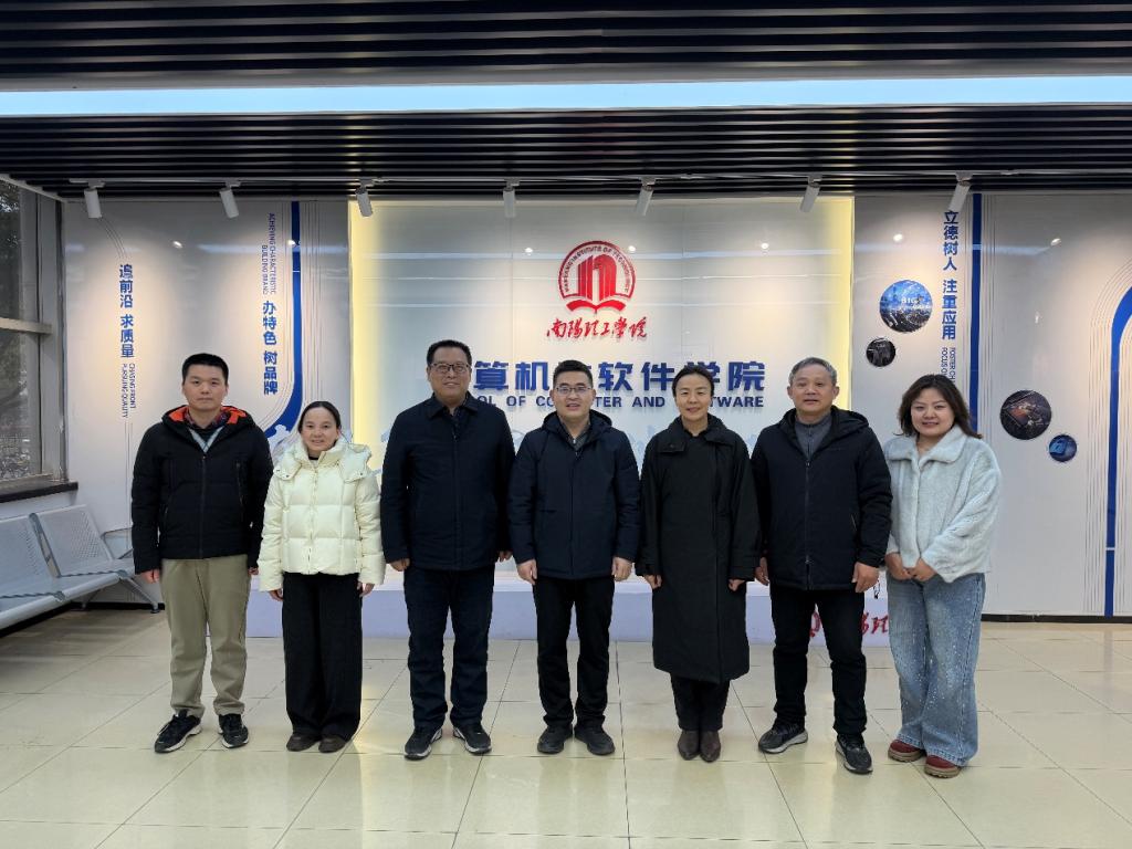 为拓宽专业建设思路,促进工程教育专业认证工作,提升软件学院人才培养质量。3月6日,软件学院党委书记张黎烁一行4人赴南阳理工学院计算机与软件学院进行调研交流。南阳理工学院计算机与软件学院党委书记赵东江、院长刘黎明热情接待了调研组一行。