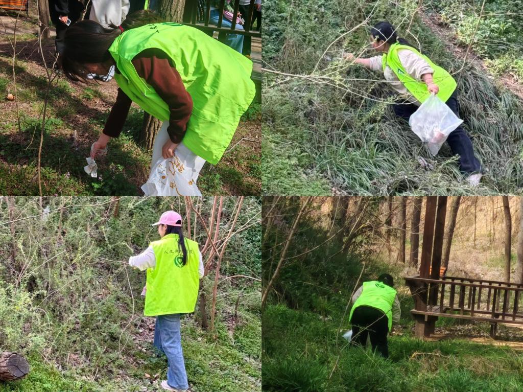 活动当天,参与同学准时于怀若谷入口处集合。负责人明确了清扫区域与任务分工,并细致提醒了劳动过程中的安全注意事项。随后,志愿者们有序进入怀若谷,迅速投入到热火朝天的环境清扫工作中。大家手持清洁工具,分工协作,默契配合,认真捡拾散落在步道、草坪、角落的纸屑、塑料瓶等垃圾,清理堆积的枯枝落叶,并将收集的垃圾杂物集中清运。经过近两小时的辛勤劳动,怀若谷区域的卫生环境得到显著改善,面貌焕然一新。