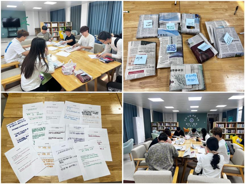 活动伊始,“我的宝藏书”快闪环节率先拉开序幕。参与学生在书架上挑选心仪书籍,精心包装后仅留下线索与推荐语,并将“图书盲盒”投入盲盒池,现场欢声笑语不断,陌生的学生因共同的阅读爱好快速破冰。随后进入盲盒甄选与彩蛋寻宝环节,同学们根据线索挑选心仪书籍,拆开盲盒后翻阅寻找藏于书中的“彩蛋”,通过摘抄经典段落或回答小问题等趣味任务,在沉浸式阅读中感受文字魅力。活动最后,张梦甜老师请每人用不超过15个字的一句话总结全书,一句句真挚感悟,既是对书中故事的回味,也是对阅读之美的告白。张老师也借此鼓励大家继续保持阅读习惯,让书香常伴日常,让阅读成为青春里的长久热爱。