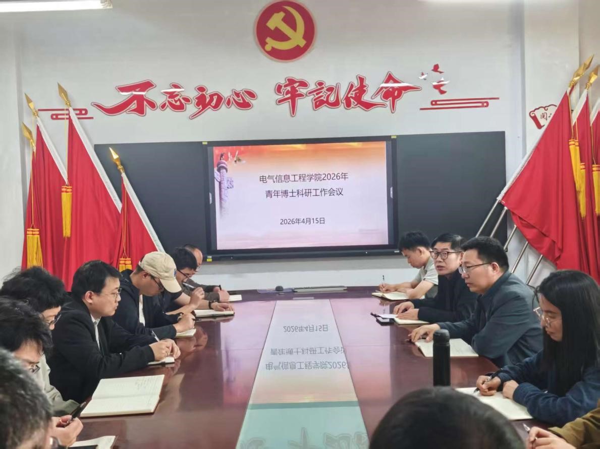 为积极推进学院科研工作,破解电气信息工程学院当前青年博士高层次项目申报经验不足和立项困难等问题,4月15日下午,学院在B320会议室组织召开了2026年青年博士科研工作会议。会议由院长黄全振主持,分管科研副院长张玉碧及全体青年博士参加了会议。