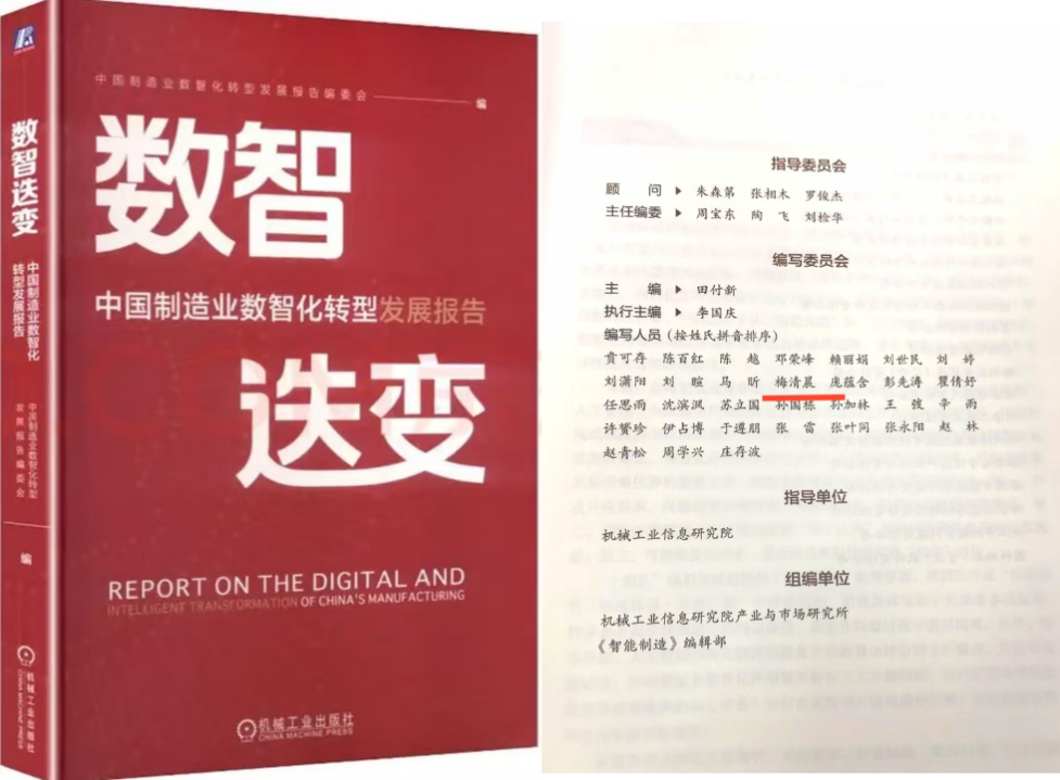 梅清晨老师依托自身在制造业数智化转型领域的长期研究与工程实践,承担了本书第五部分《中国制造业数智化转型创新技术》的撰写工作。其深入专业的论述,彰显了管理工程学院教师积极投身国家重大课题、推动产学研融合的学术使命感,也反映了我校教师在助力制造业高质量发展中的积极作为。该书的出版,将进一步扩大我校在国内智能制造领域的社会影响力,促进学校与行业高端平台的学术交流与合作。